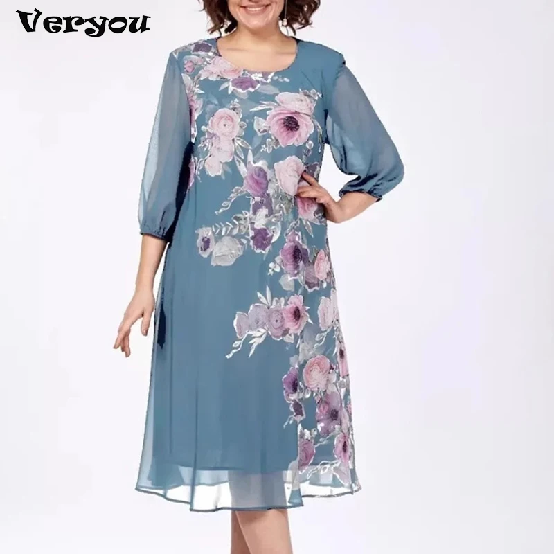 Платье больших размеров, женское летнее пляжное праздничное платье в стиле бохо с круглым вырезом и рукавами 3/4, вечерние платья для женщин, модное платье миди
