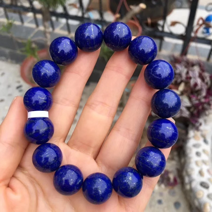 Браслет из натурального лазурита и Королевского голубого камня для мужчин и женщин, круглые бусины 15 мм, ювелирные изделия из натурального ...