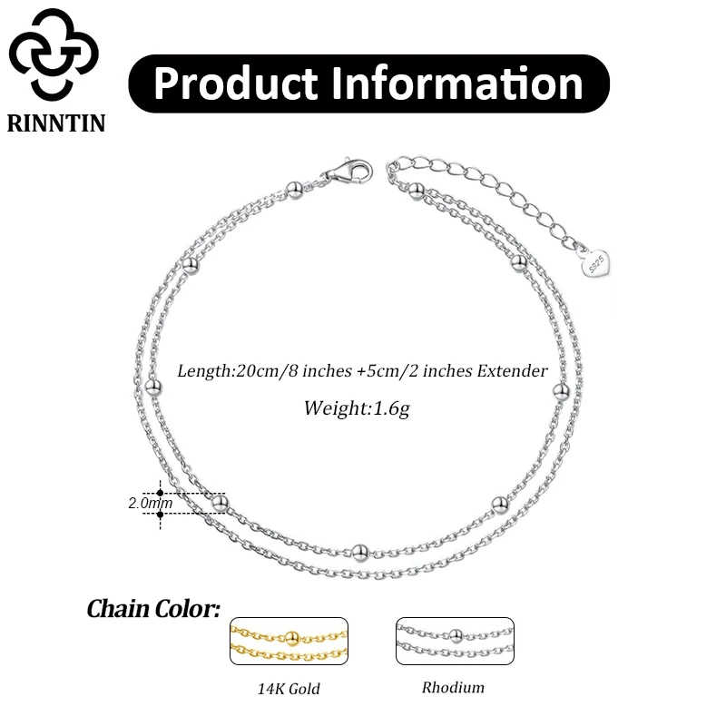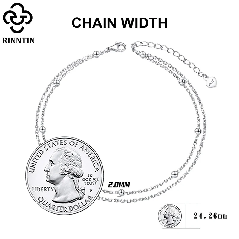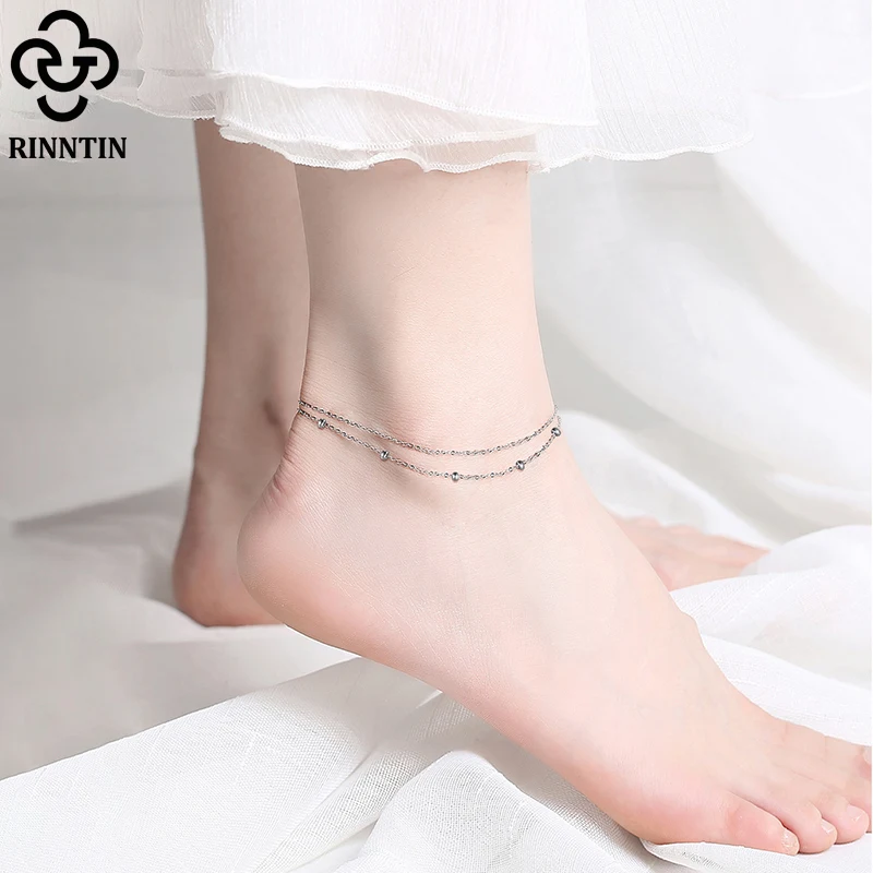 Браслет на ногу женский двухслойный из серебра 925 пробы со спутником