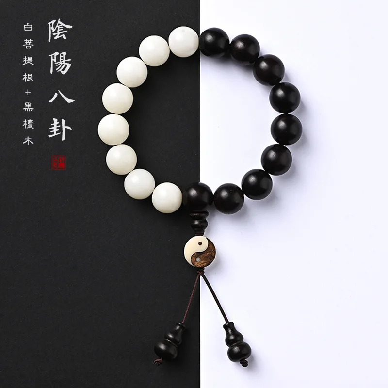 Браслет с белыми искусственными бусинами из эбенового дерева в виде восьми триграммов