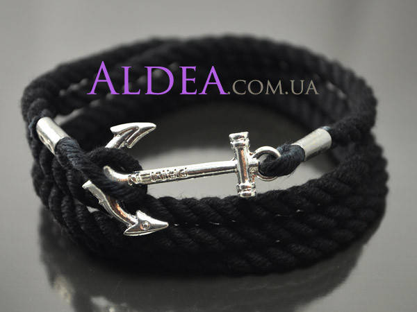 Браслет с якорем, черный канат серебро-2