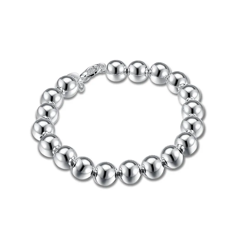 Браслет-цепочка женский из серебра 925 пробы с бусинами 10 мм