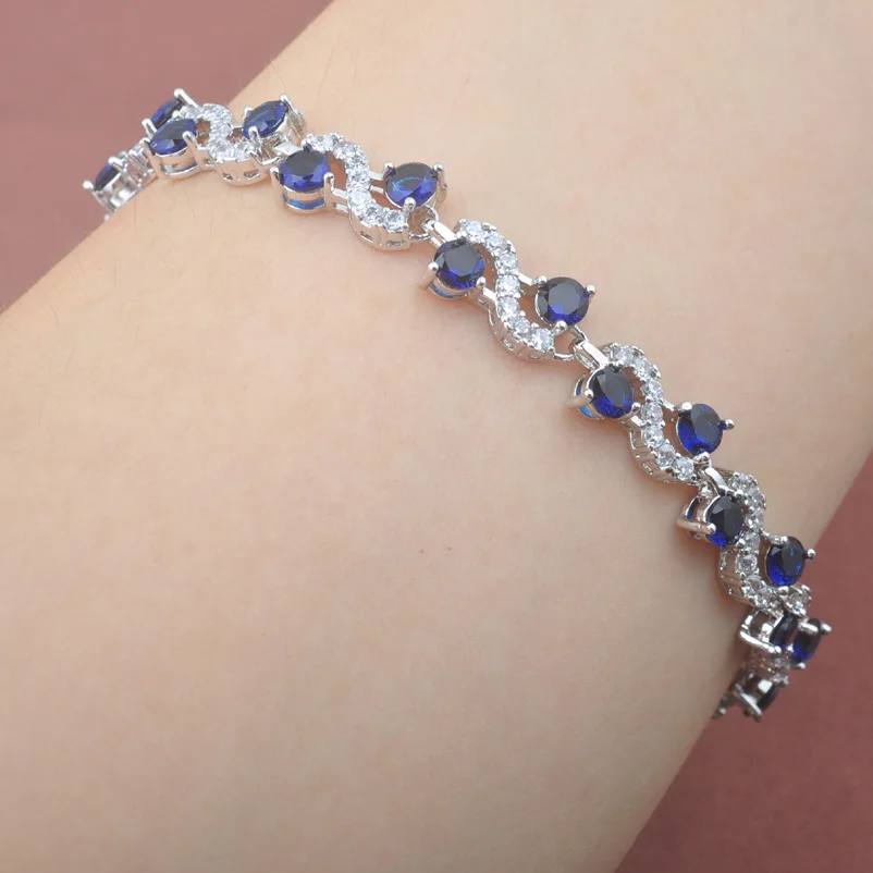 Браслет-цепочка женский серебряный, 7-8 дюймов, с синим кристаллом, OS0215