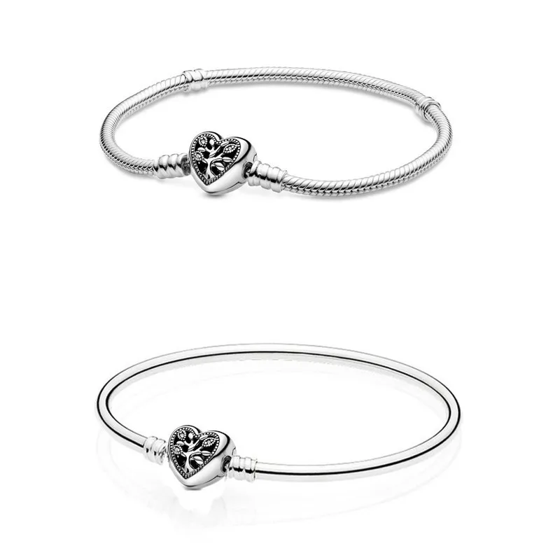 Браслет-цепочка из серебра 925 пробы с застежкой в виде сердца и семейного дерева