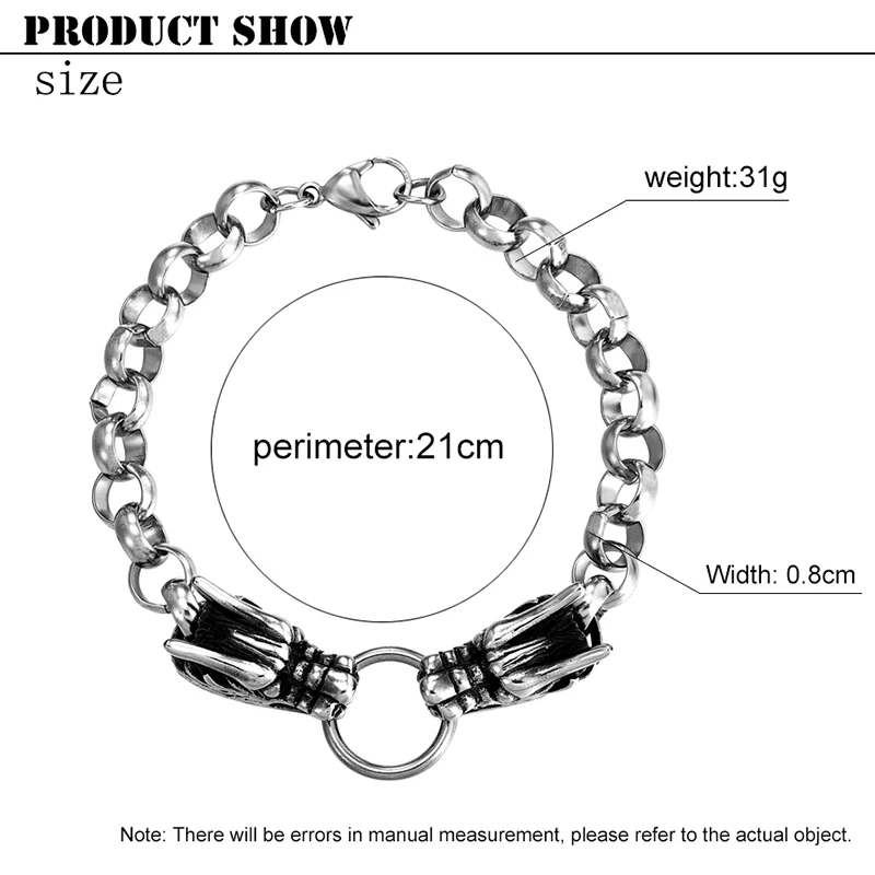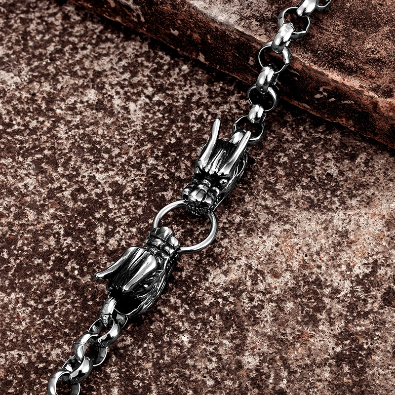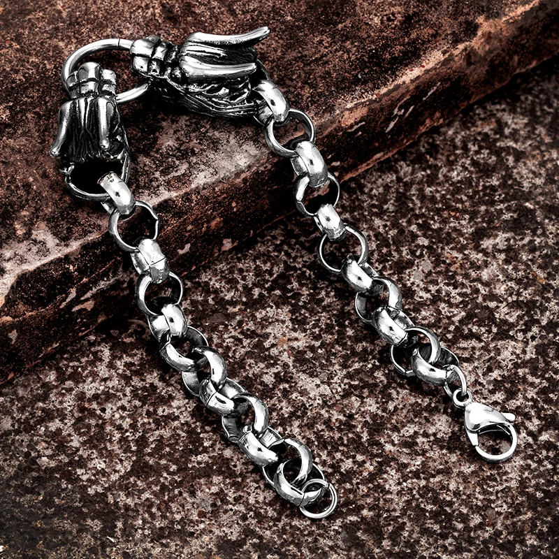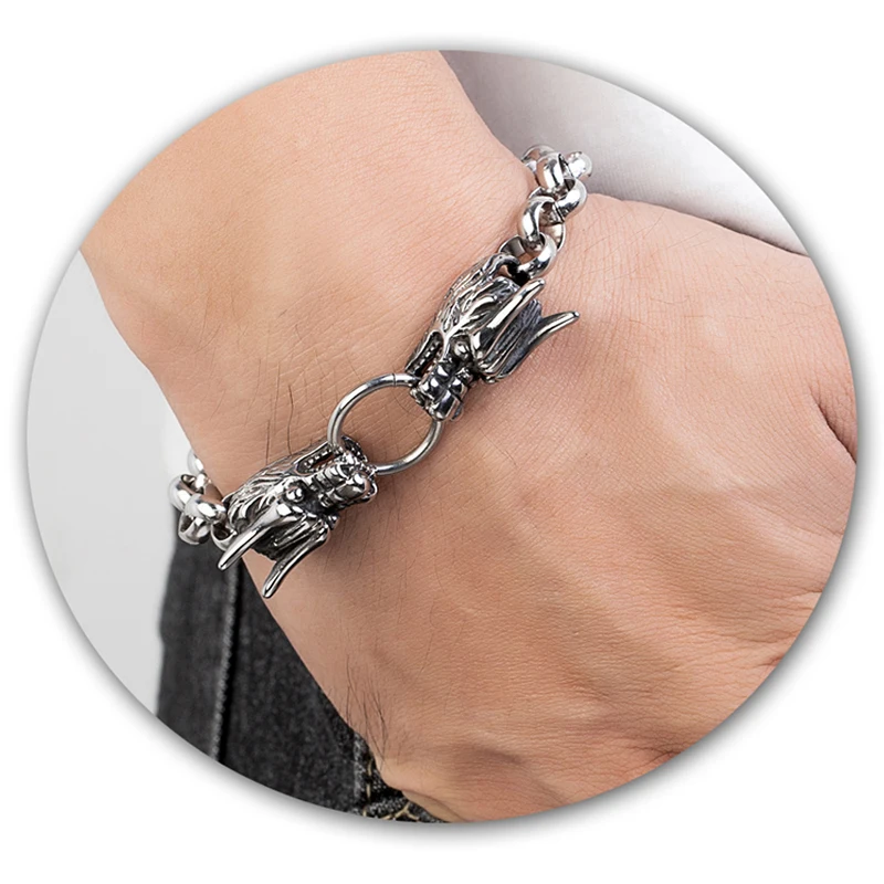 Браслет-цепочка мужской из нержавеющей стали с узором в виде головы дракона