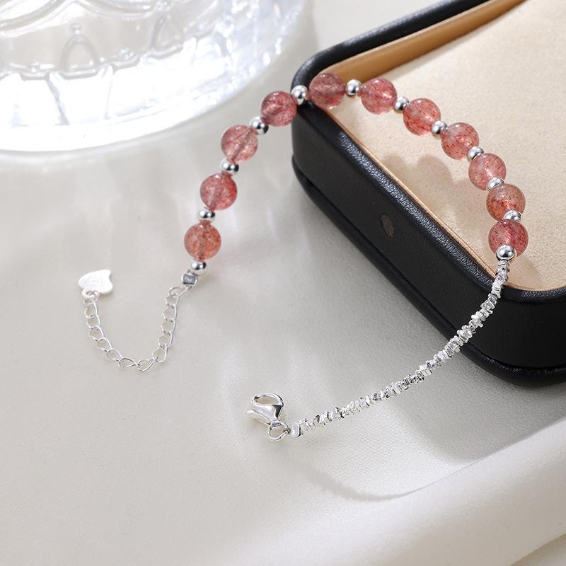 Браслет Banyan Tree S925 из розового кварца с бусами из клубничного кристалла - женский подарок девушке с предсказанием судьбы в виде цветка персика BRS367 серебряный