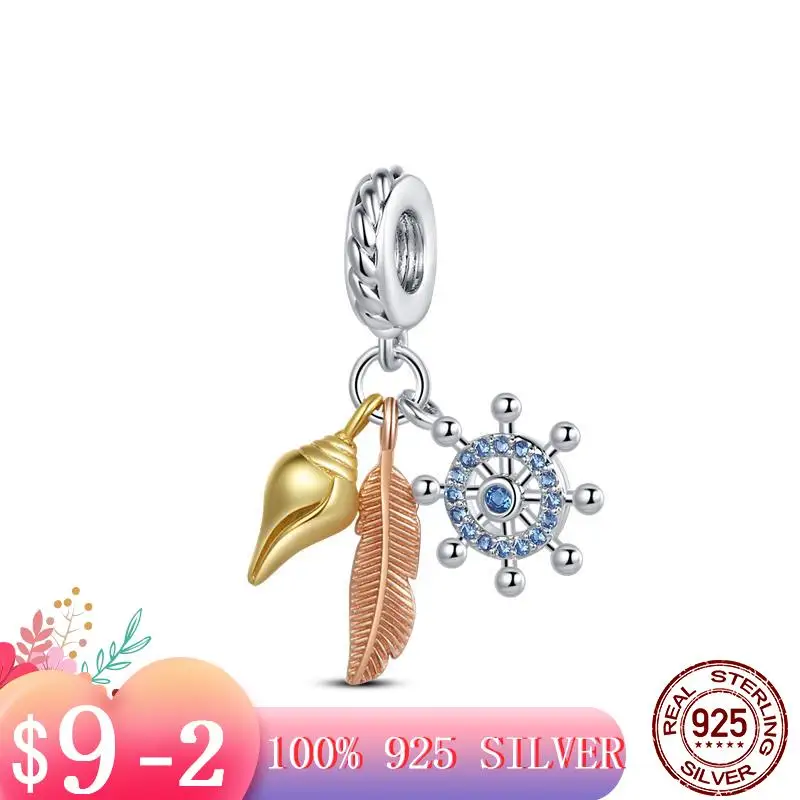 Браслет Pandora женский из серебра 925 пробы с перьями и ракушками