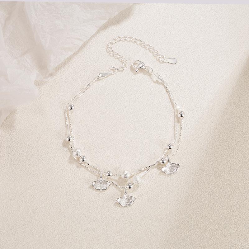 Браслет Three Life с абрикосом, посеребренная подвеска с двойным листом гинкго