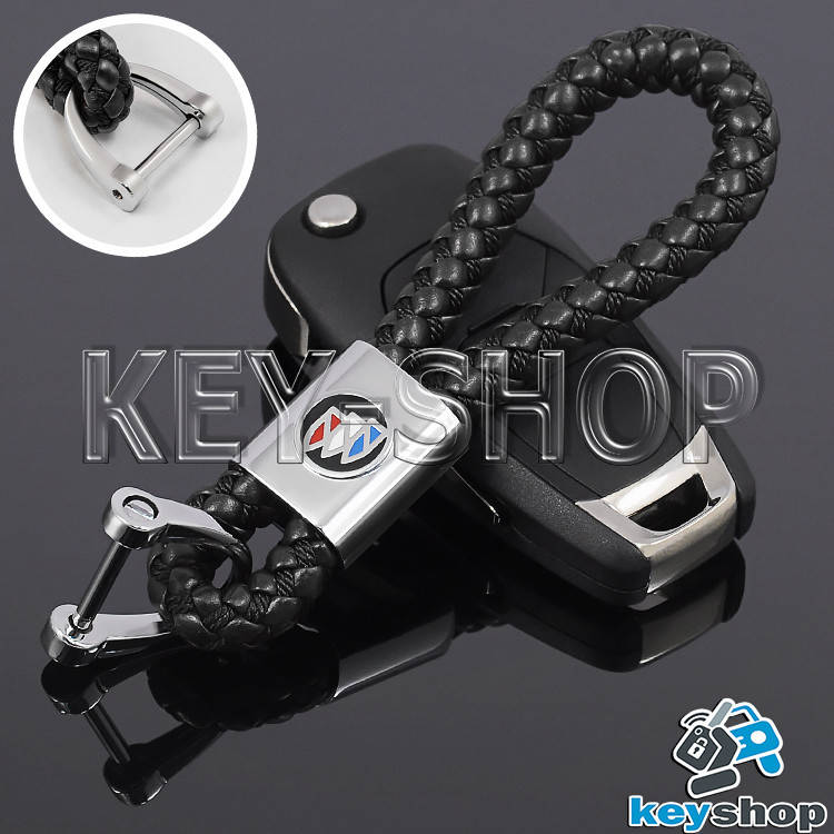 Брелок для авто ключей Buick (Бьюик) кожаный плетеный (черный)