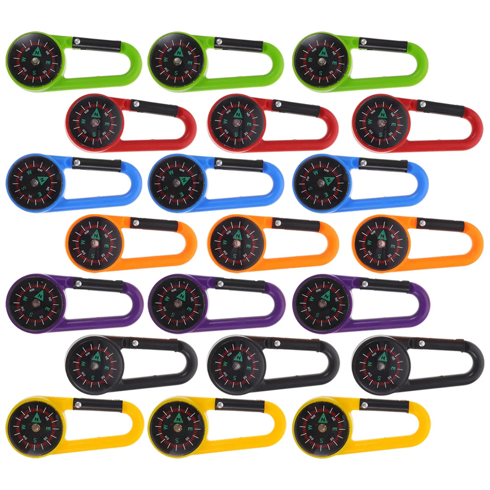 Брелок для ключей с компасом, аксессуар для ключей, походный Пластиковый Карабин с крючком, аксессуары для путешествий, кемпинга, 21 шт.