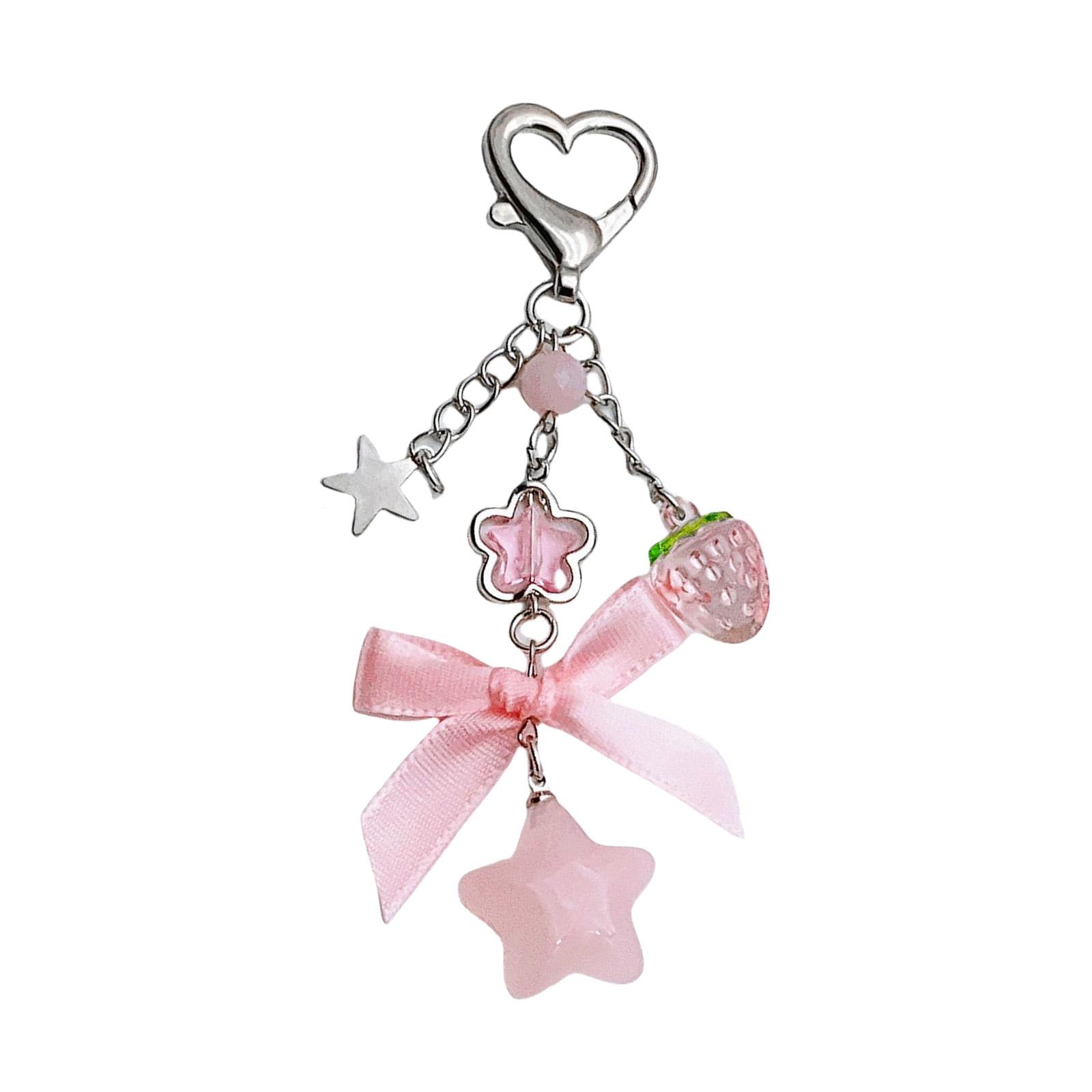 Брелок-подвеска в виде клубники, многофункциональный бант и подвеска в виде звезды, аксессуар для ключей, подходящий для ключей и модных сумок розовый