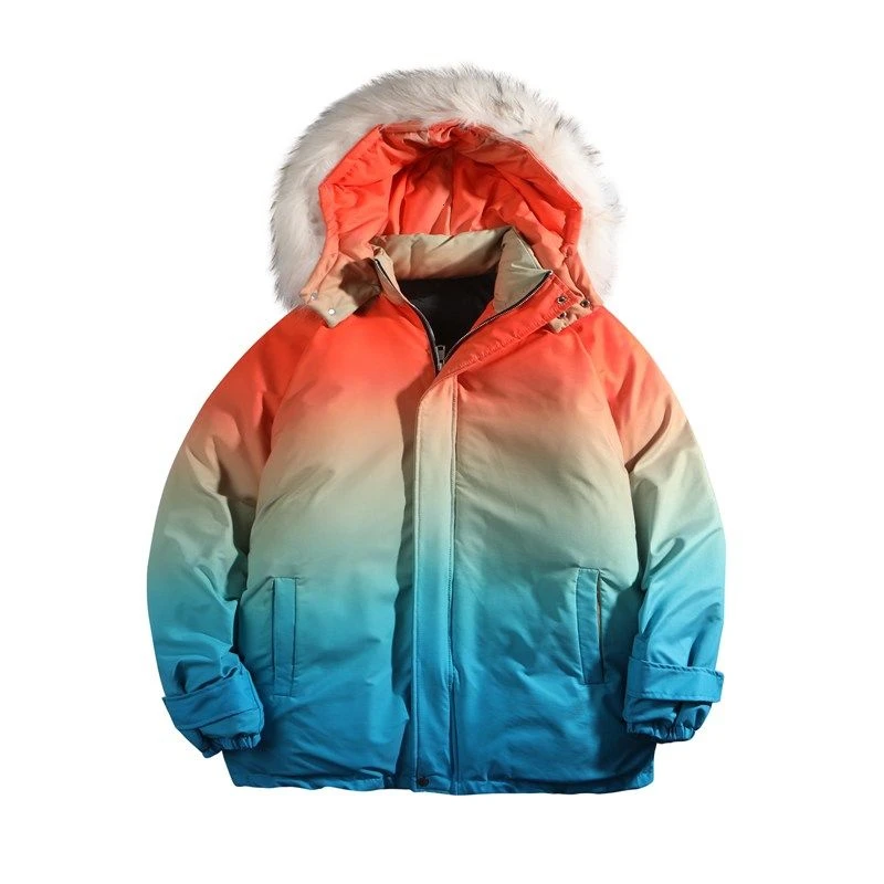 Winter Thickened Gradient Color Jacket Men's Parka Warm Fashion Casual Fur Collar Hooded Coat Men Korean Short Coat Mens Clothes