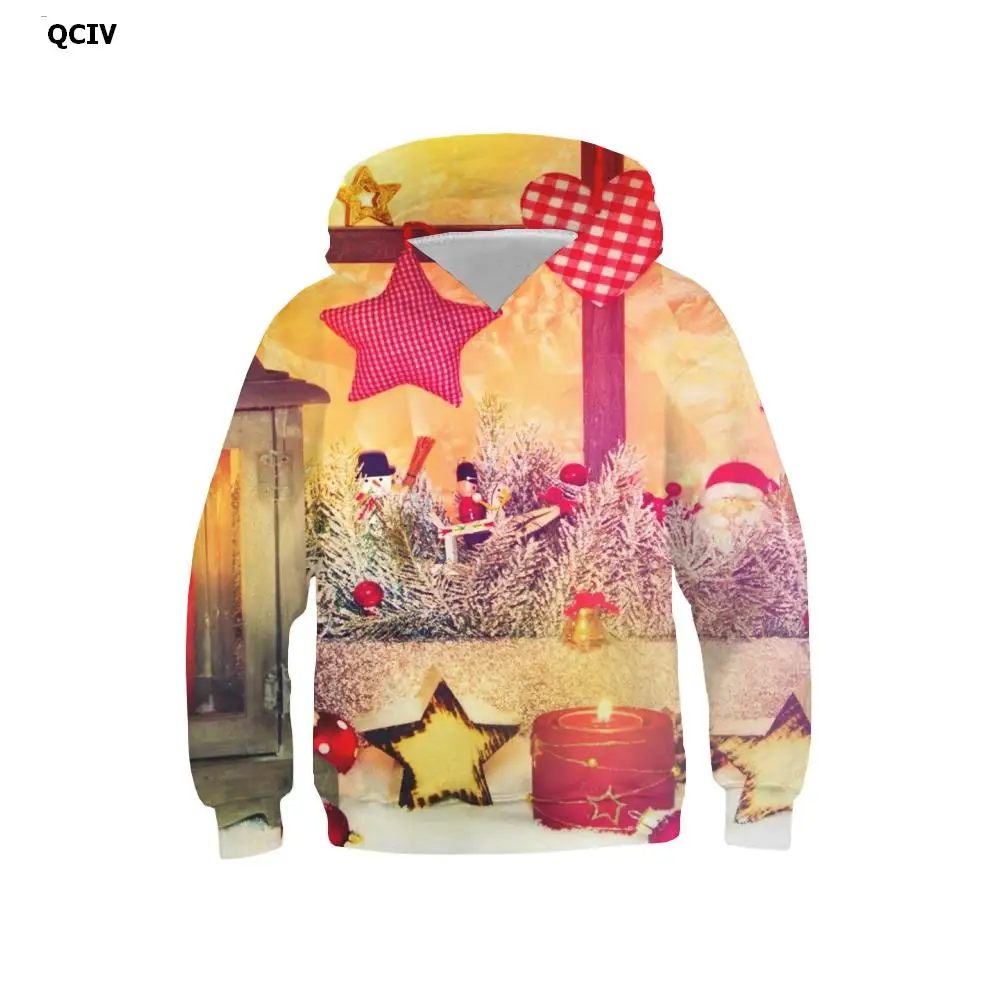 Брендовые рождественские свитшоты QCIV для мальчиков, новогодняя толстовка с капюшоном и принтом, Повседневная Толстовка с капюшоном и принт...