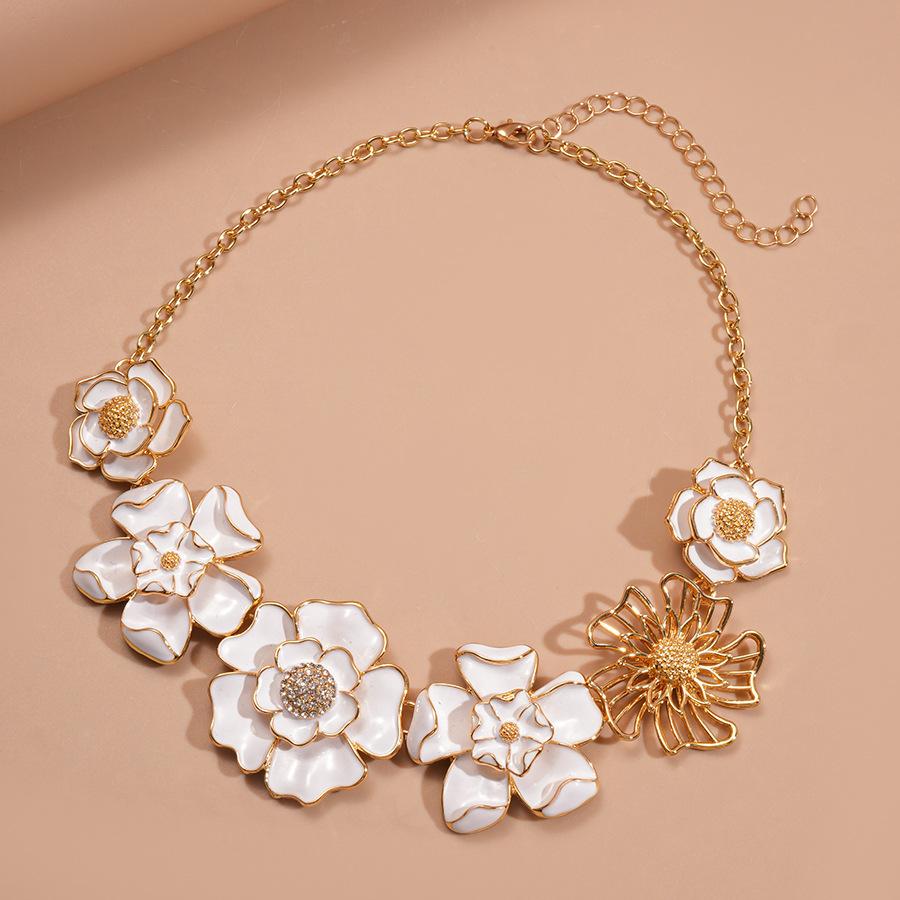 Бриллиантовая капля масла полая геометрическая цепочка на ключицу с цветком в стиле ретро, нишевое высококлассное ожерелье для женщин