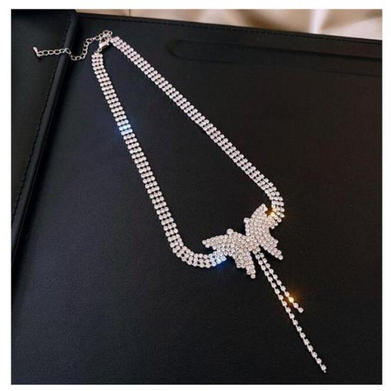 Бриллиантовое колье-бабочка с кисточкой, цепочка на ключицу с насекомым серебряный