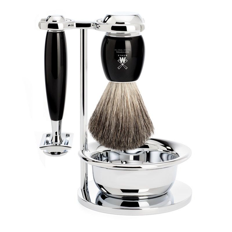 Бритвенный набор MUEHLE VIVO с Т-образной бритвой и чашей, Черный, Т-образная