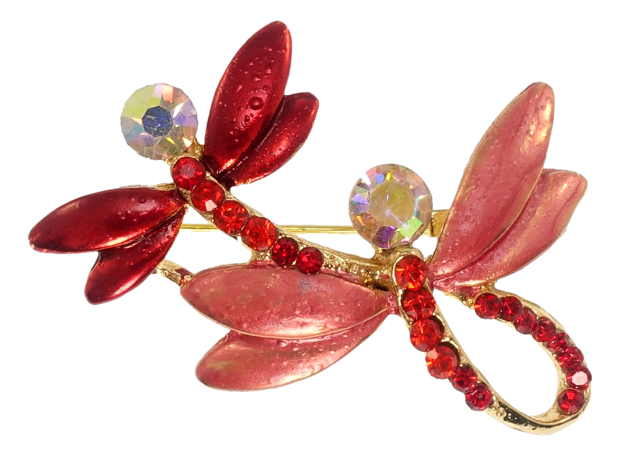 Брошь "Две стрекозы с красными стразами"