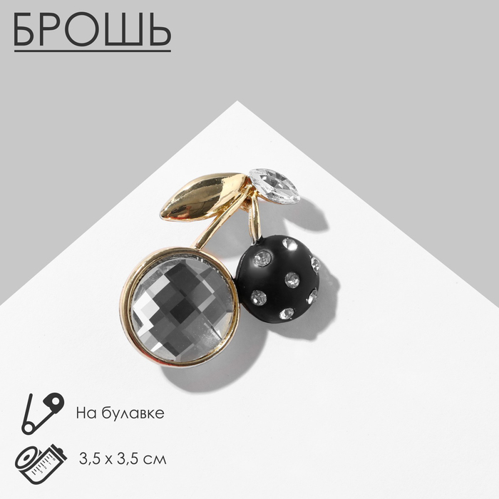 Брошь «Ягодки вишни», цвет чёрно-белый в золоте