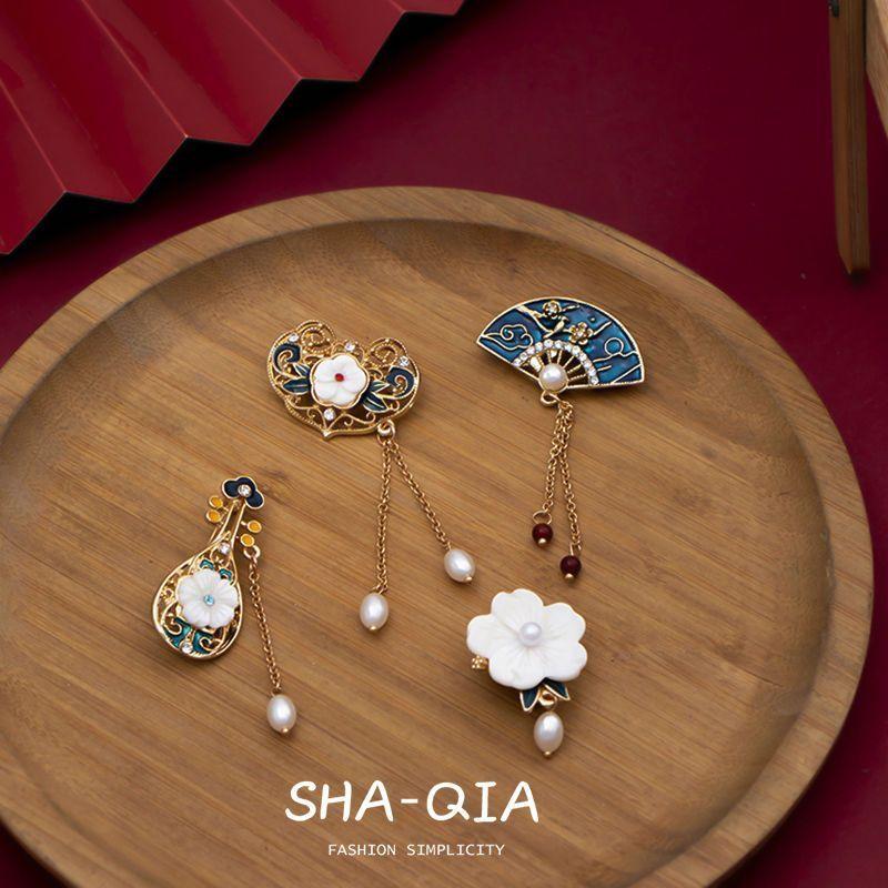 Брошь в китайском стиле с золотой эмалью, ракушка, цветок, ретро, темперамент, элегантная булавка, женский корсаж, аксессуары для Cheongsam 45*20mm