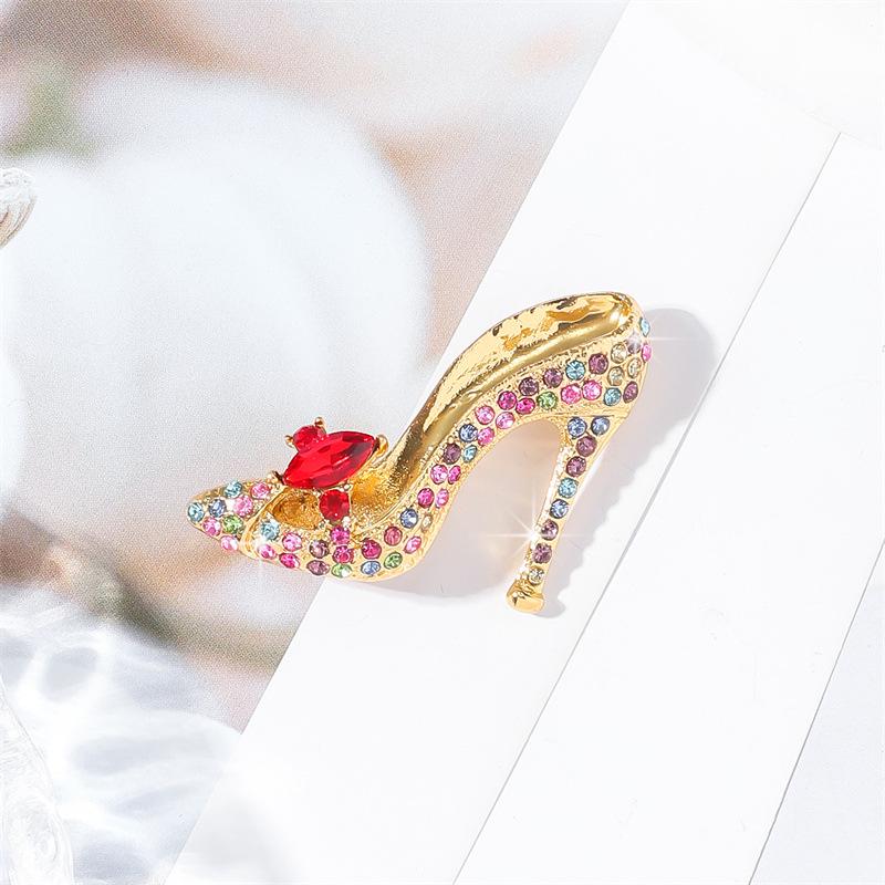 Брошь на высоком каблуке из сплава с инкрустацией кристаллами для вечернего платья и пальто