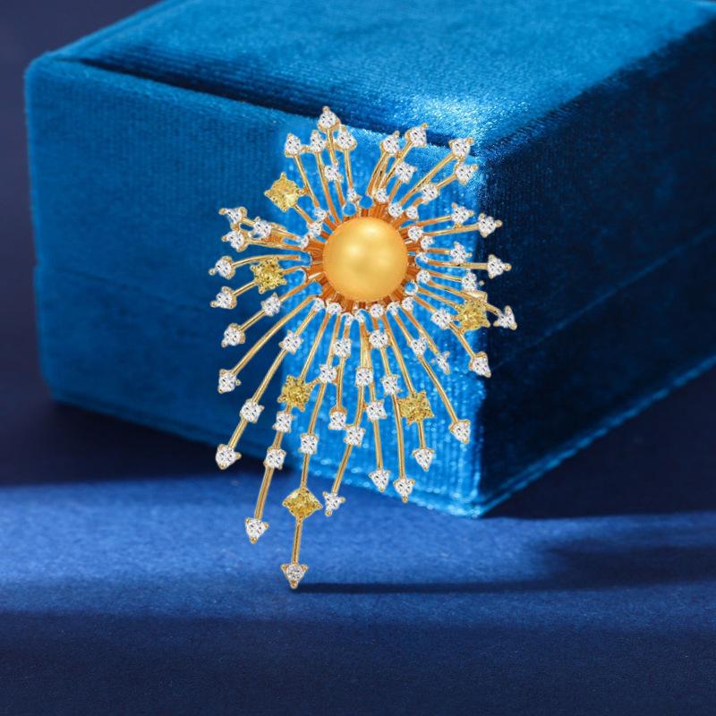 Брошь со стразами в виде яркого фейерверка, женская, высокого класса, нежная, темпераментная, универсальная, аксессуары для одежды Electroplated real gold золотой
