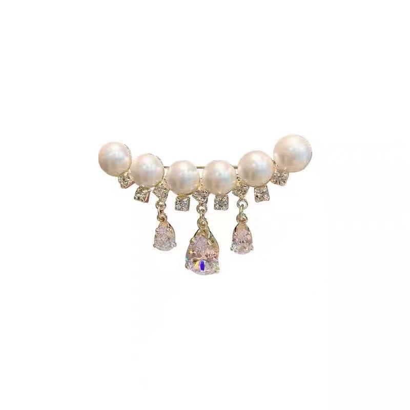 Брошь с бахромой из циркона, брошь с жемчугом класса люкс, антибликовая брошь-артефакт на талию, брошь с аксессуарами для одежды, для женщин