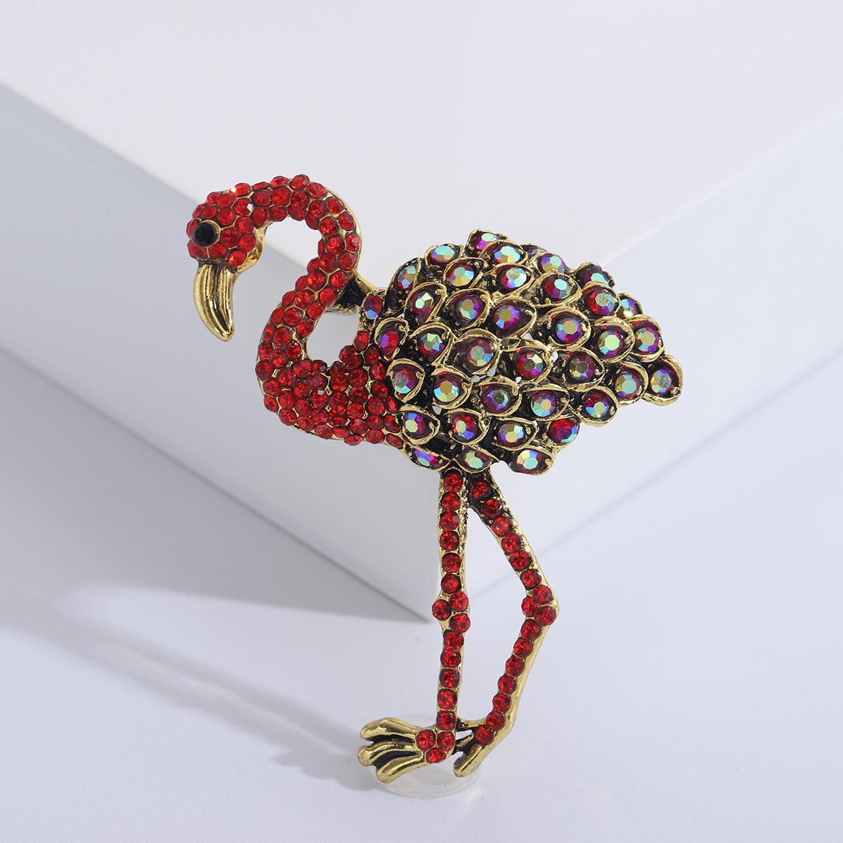 Брошь-фламинго с бриллиантами, модная брошь-булавка в виде животного, инкрустированная бриллиантами, аксессуары для женской одежды красный