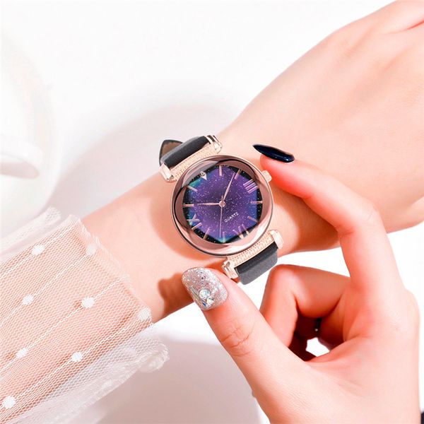 fashion women simple starry dial quartz watch ladies leather belt watches gift montre à quartz femme, Slivery;brown