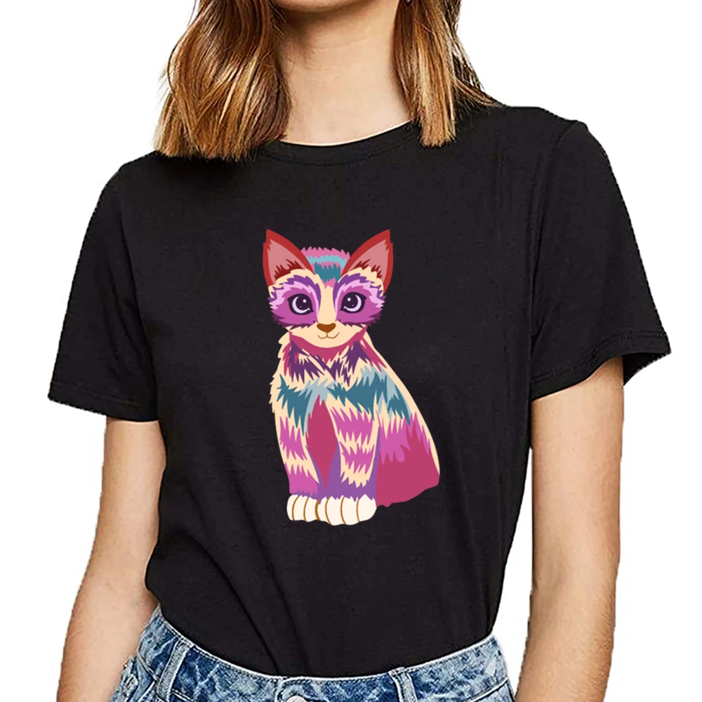 Tops T Shirt Women colorful cute funny rainbow kitten rave cat Hip Hop Vintage Short Female Tshirt