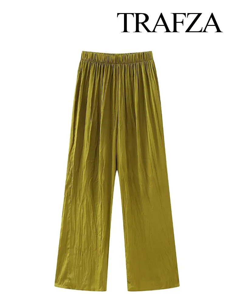 Брюки Женские однотонные с высокой талией, эластичным поясом и декоративными складками