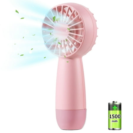 Handheld Fan 1500mAh Rechargeable Battery Portable 3 Speeds Mini Pocket Fan Pink