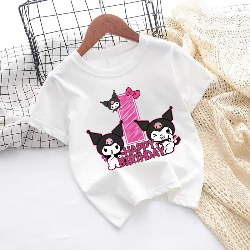 Sanrio Kuromi Number Printed T-shirt Cute Cartoon Girls Clothes Cotton Short Sleeve Children Clothing Fashion Kids Birthday Tops