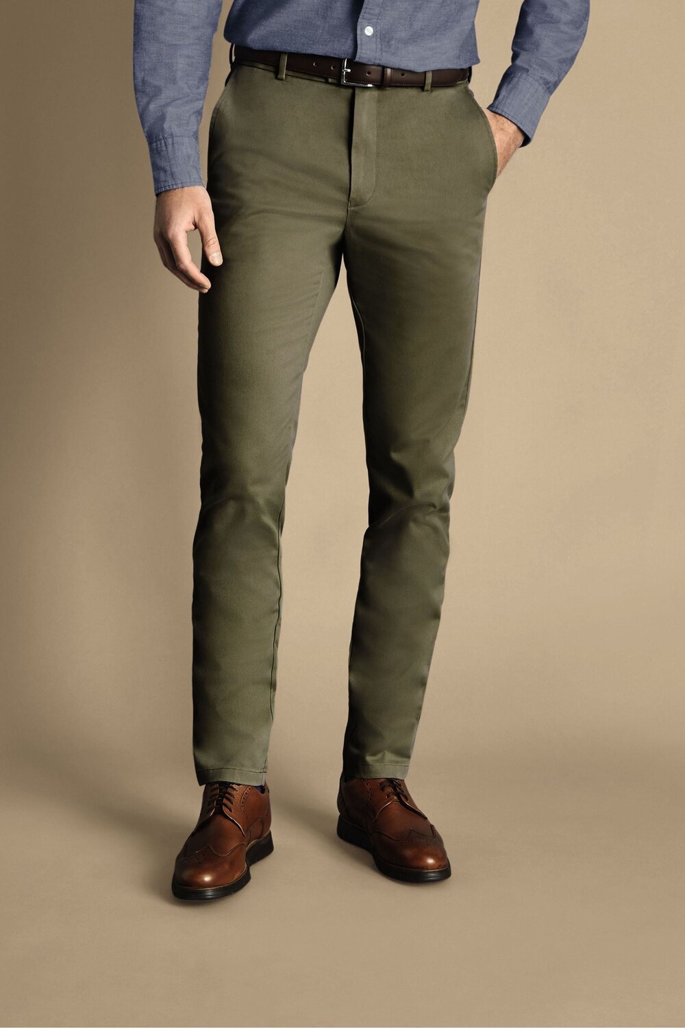 Брюки-Чиносы классического кроя не требующие глажки Charles Tyrwhitt, зеленый