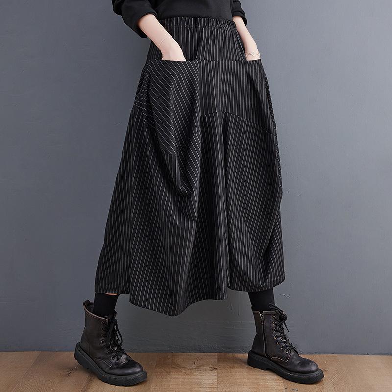 Брюки большого размера в полоску, широкие, эластичные, с высокой талией, мешковатые, утягивающие, повседневные брюки One Size