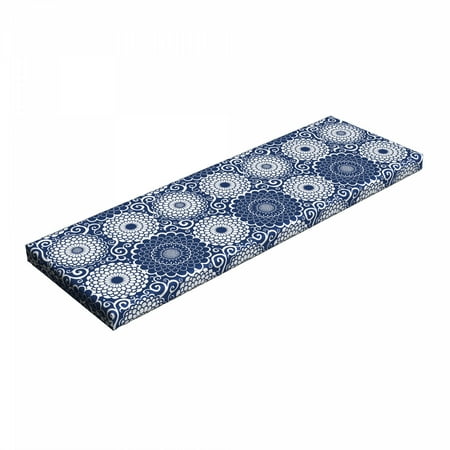 Blue Mandala Bench Pad Pattern with Large Flowers and Curls Contrasting Colors Baroque Design HR Foam Cushion with Decorative Fabric Cover 45 x 15 x 2 Navy Blue White by Ambesonne
