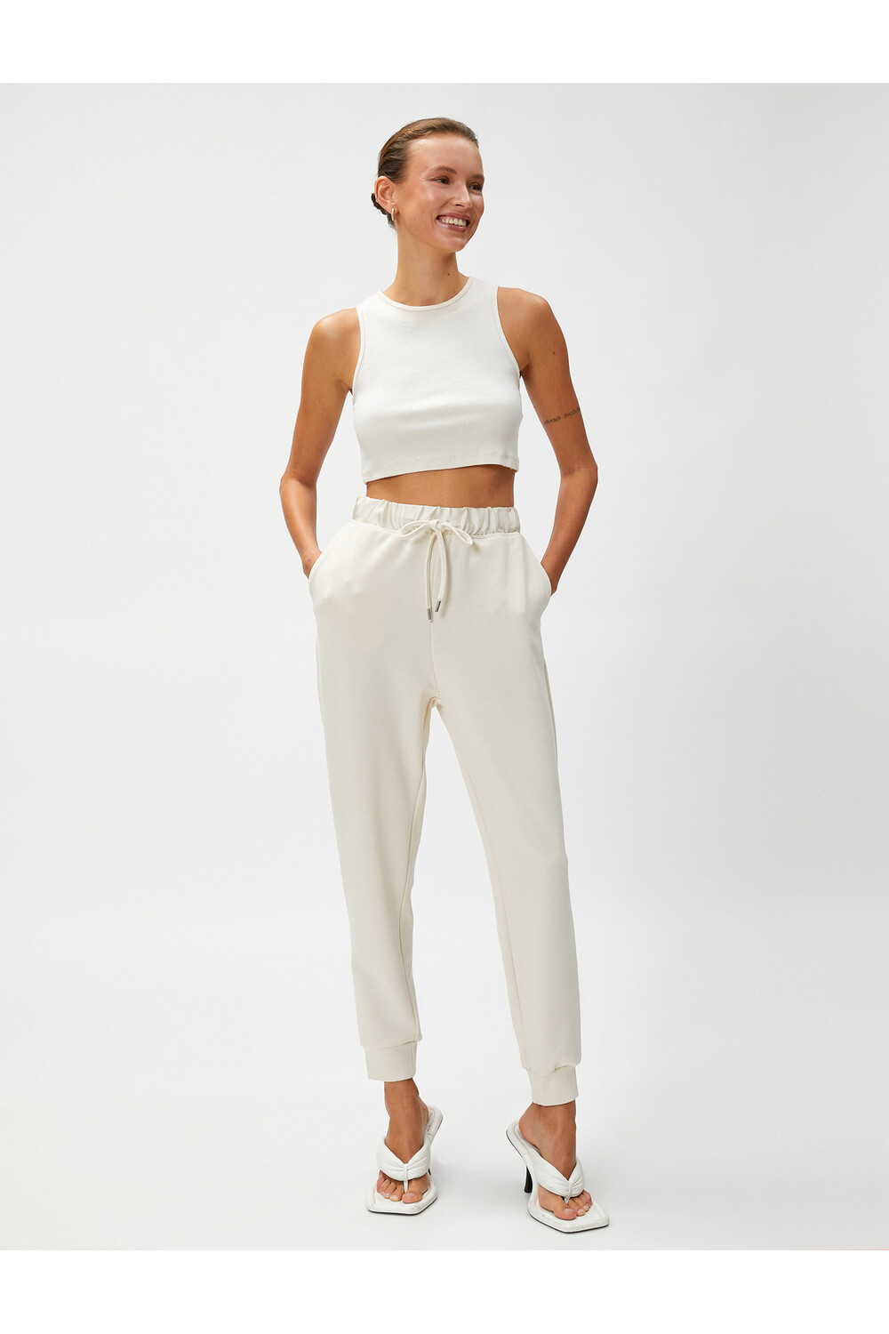 Брюки-джоггеры из модала с завязкой на талии Koton, экрю