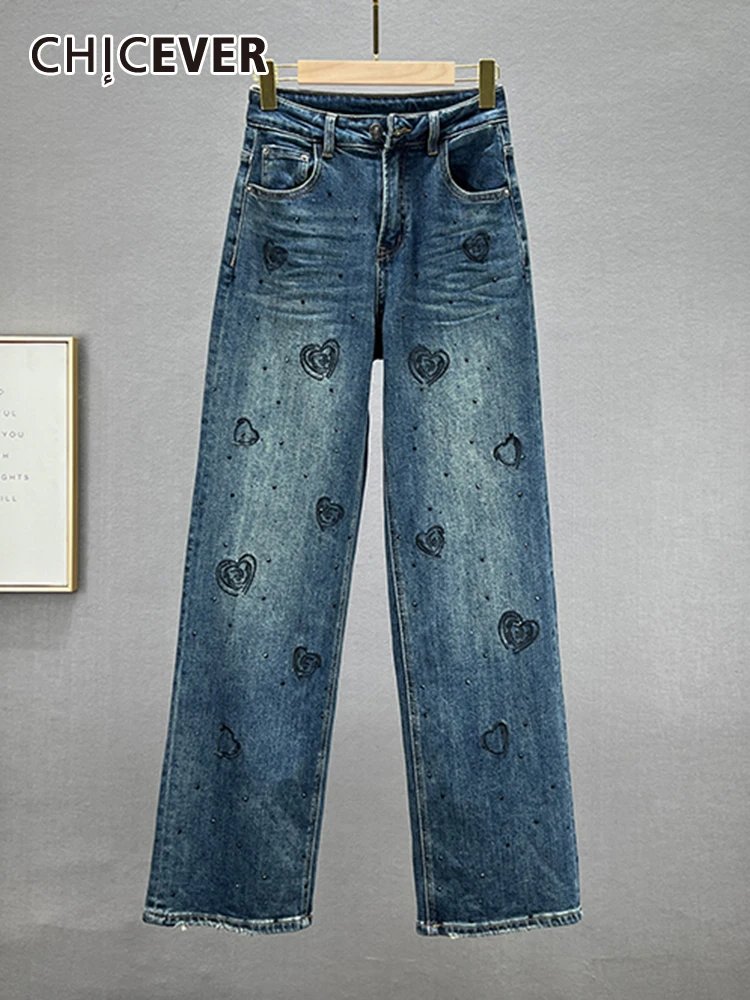 Брюки женские джинсовые со стразами, высокой талией и карманами