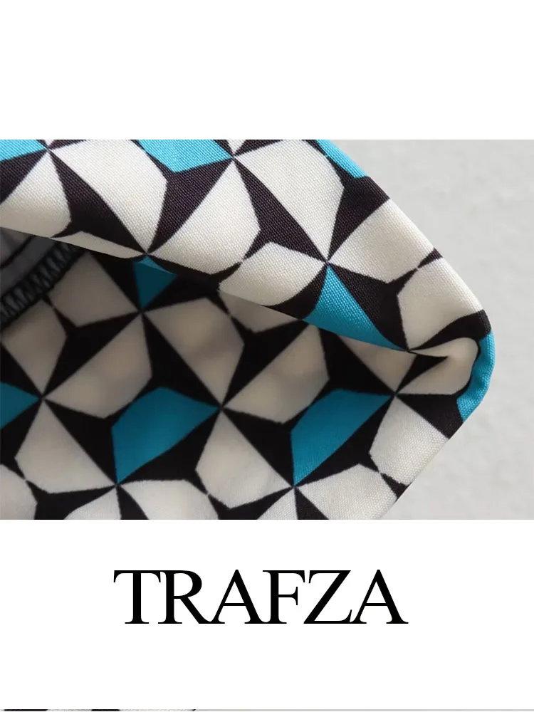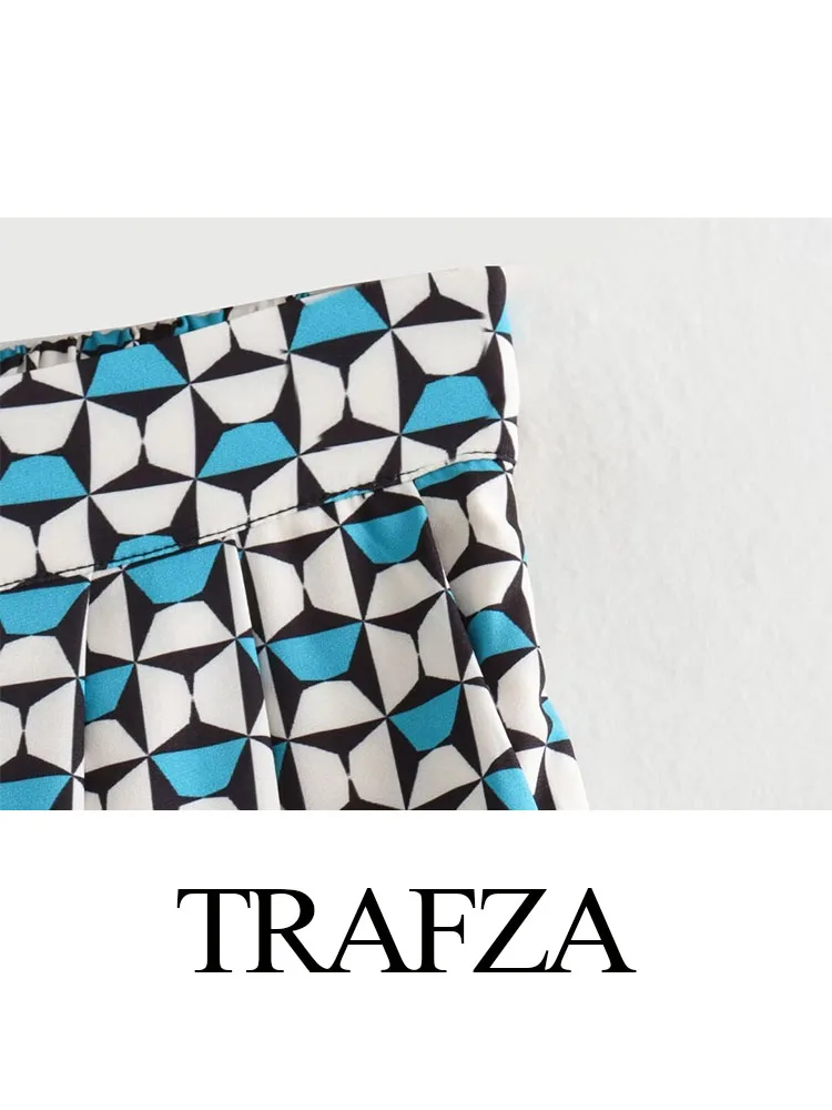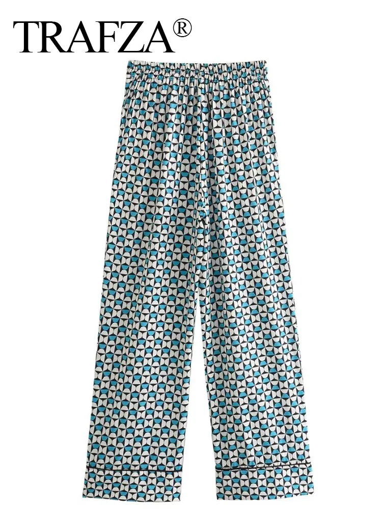 Брюки женские длинные весенние с геометрическим принтом и эластичным поясом
