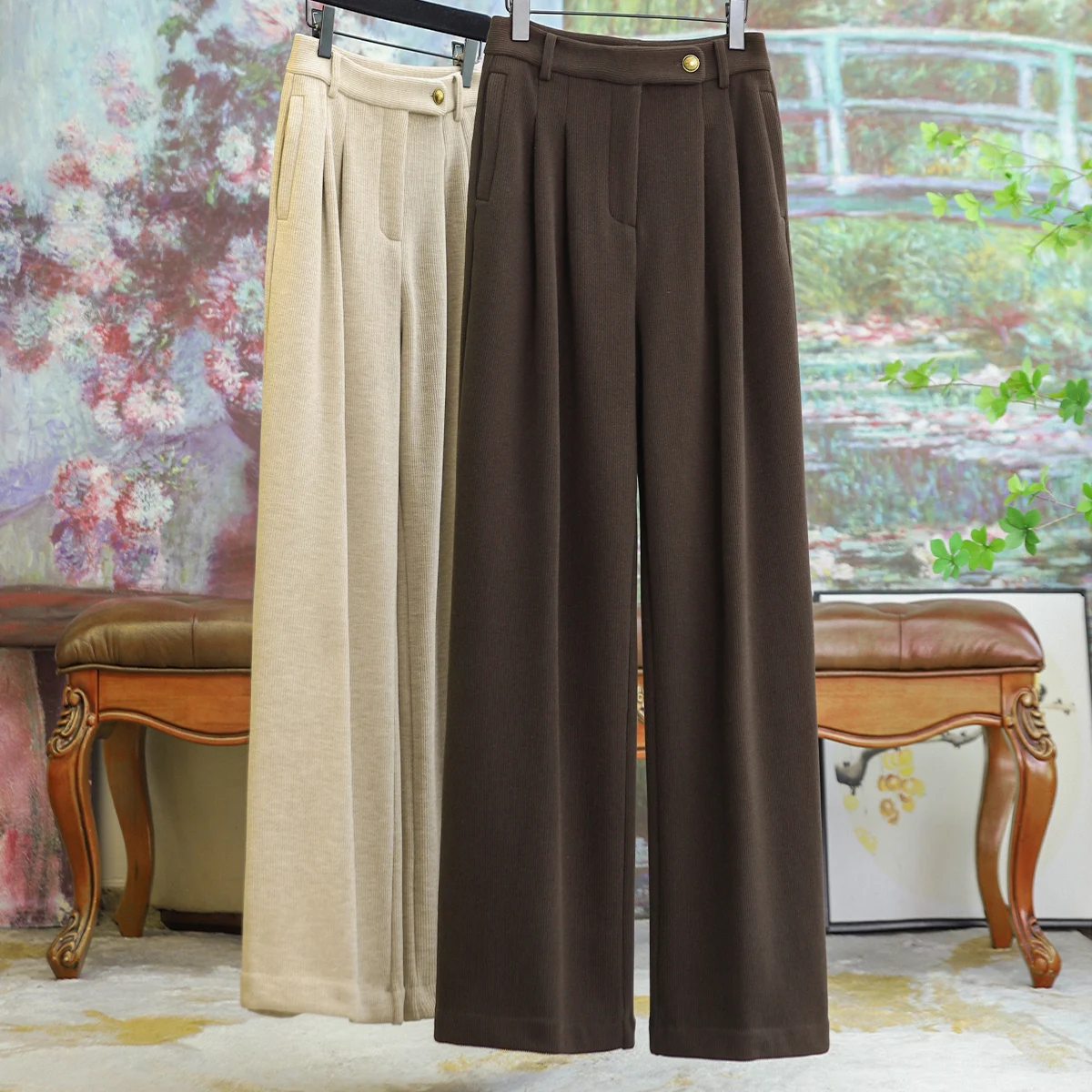 Брюки женские зимние с высокой талией и широкими штанинами, на осень и зиму