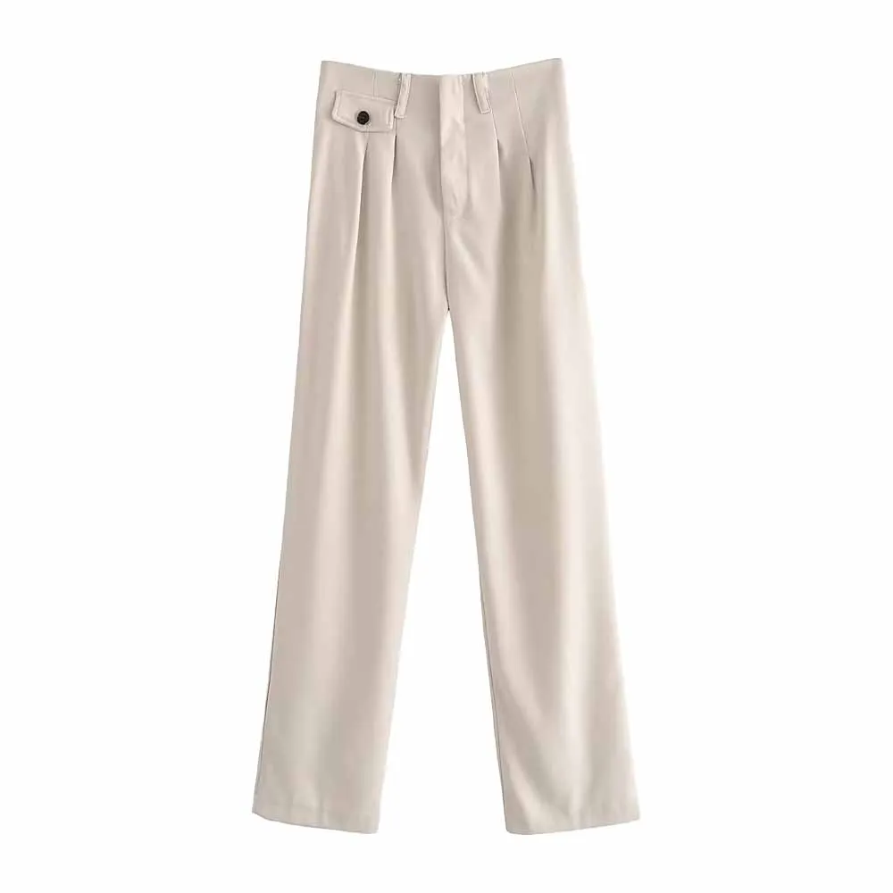 Брюки женские плиссированные однотонные с пуговицами и высокой талией