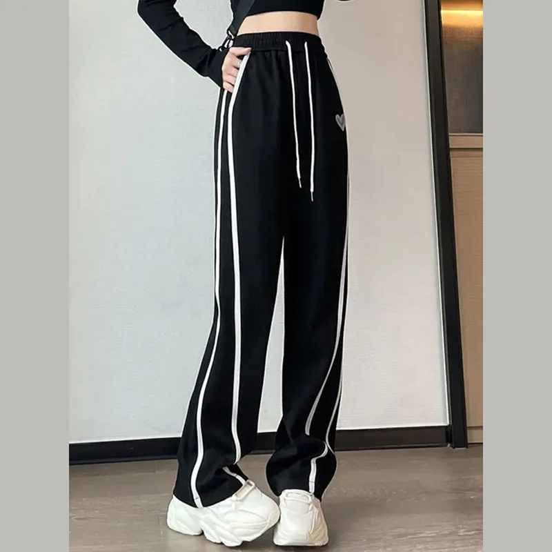 Брюки женские полосатые с широкими штанинами и завышенной талией