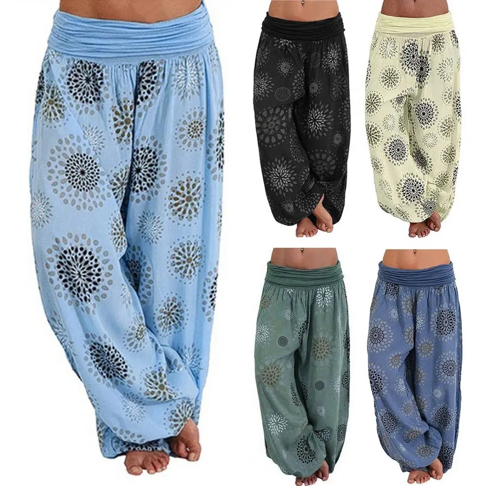 Брюки женские с эластичным поясом, свободные штаны-султанки с этническим принтом, мягкие повседневные широкие брюки с эластичным поясом для комфорта