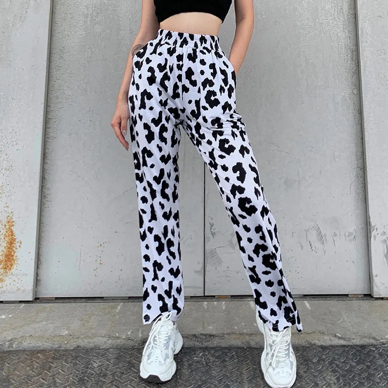 Брюки женские уличные с завышенной талией, модные повседневные эластичные прямые штаны с животным принтом, Брюки с карманами, женская одежд...