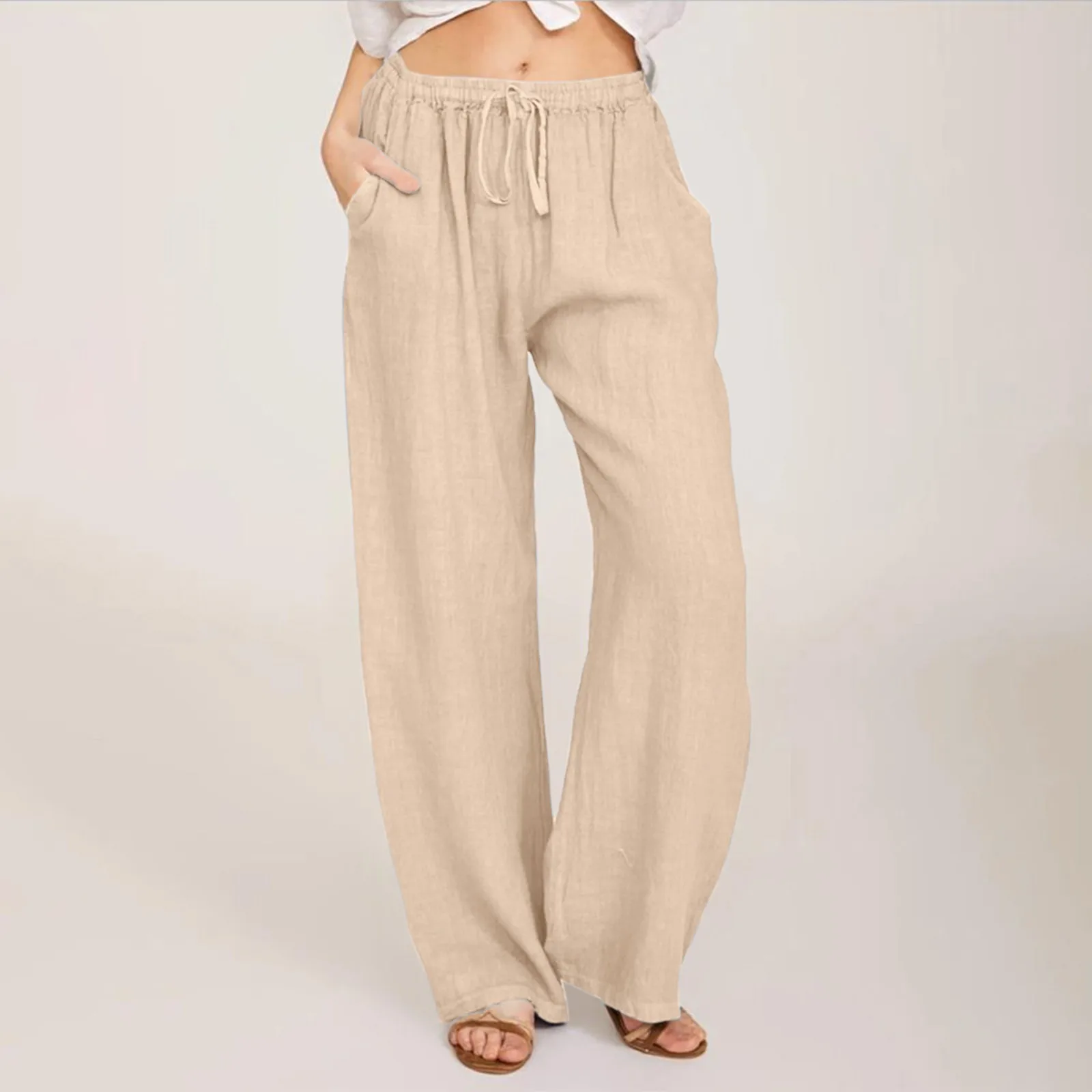 Брюки женские хлопково-льняные с широкими штанинами и эластичным поясом