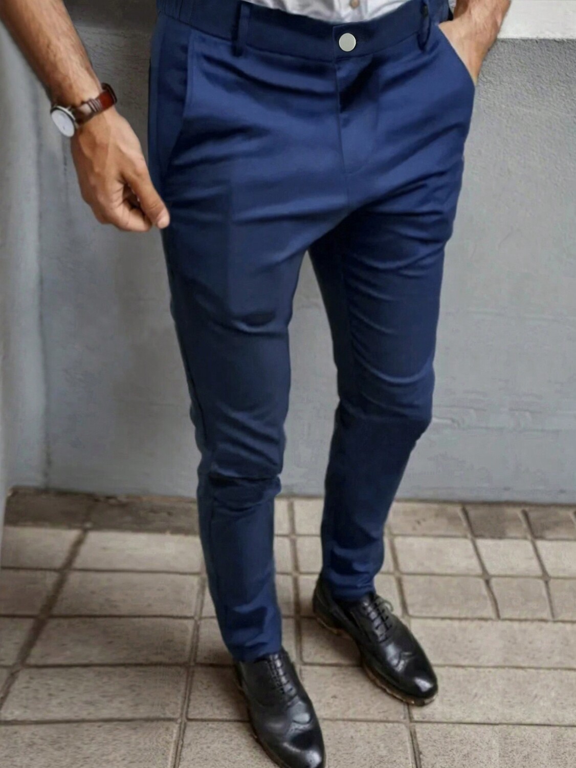 Мужские однотонные зауженные костюмные брюки с косыми карманами Manfinity Mode.