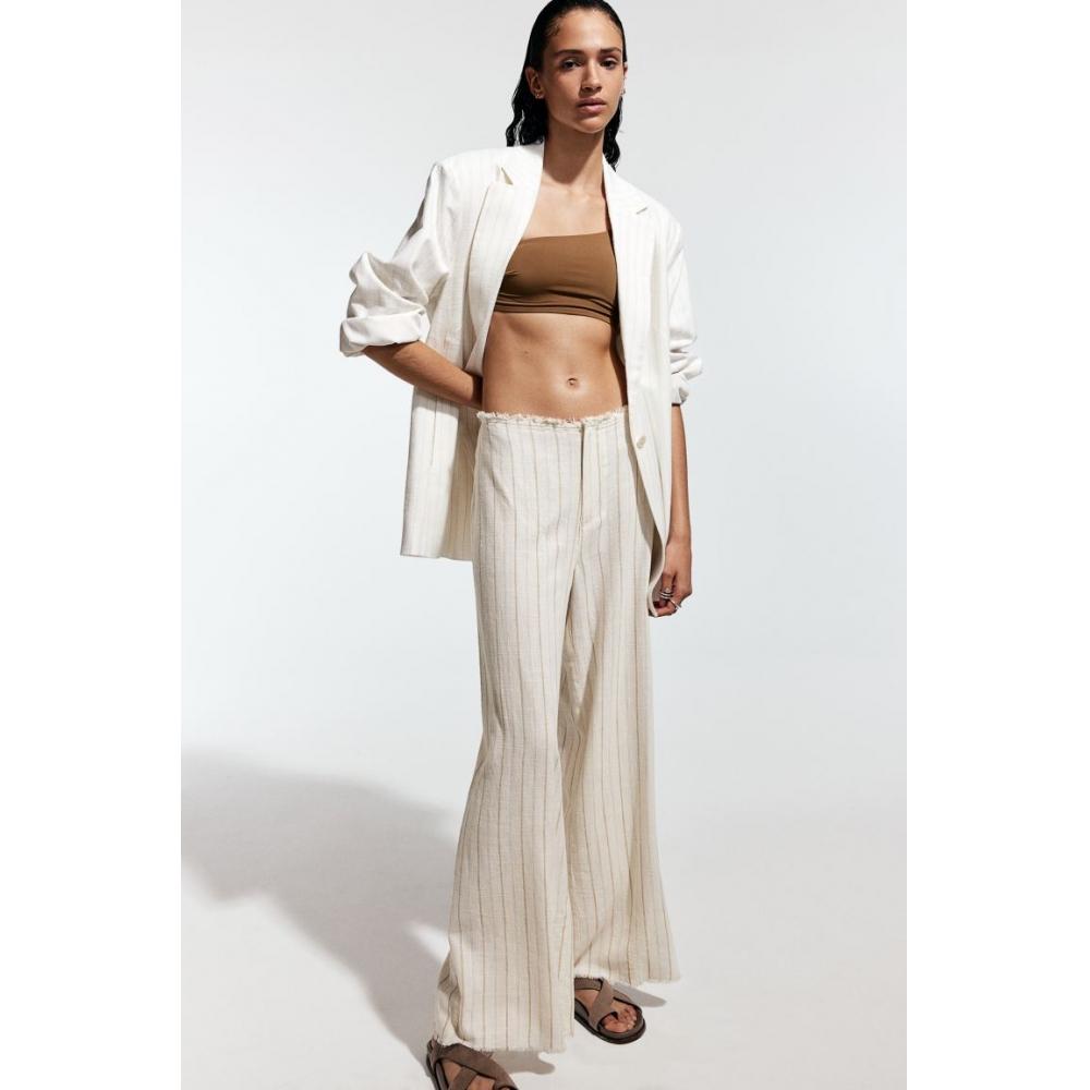Брюки из смесового льна HM Frey Edge кремового цвета в тонкую полоску
