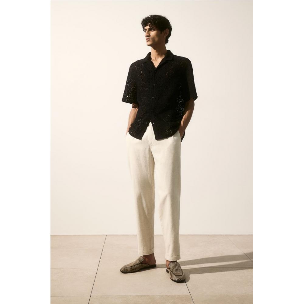 Брюки из смесового льна HM Regular кроя светло-бежевые