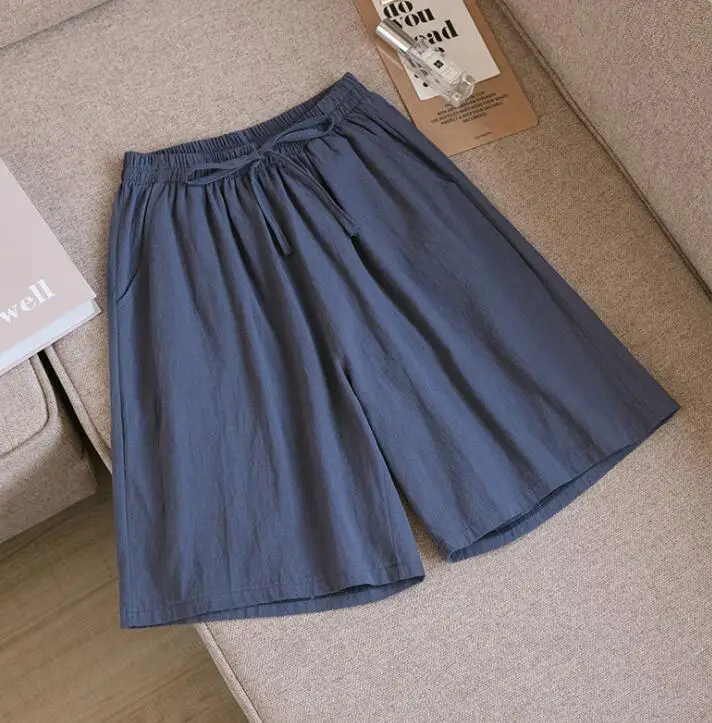 Брюки из хлопка и льна, летние пятиконечные брюки, новинка 2021, дышащие брюки с широкими штанинами, свободные брюки большого размера