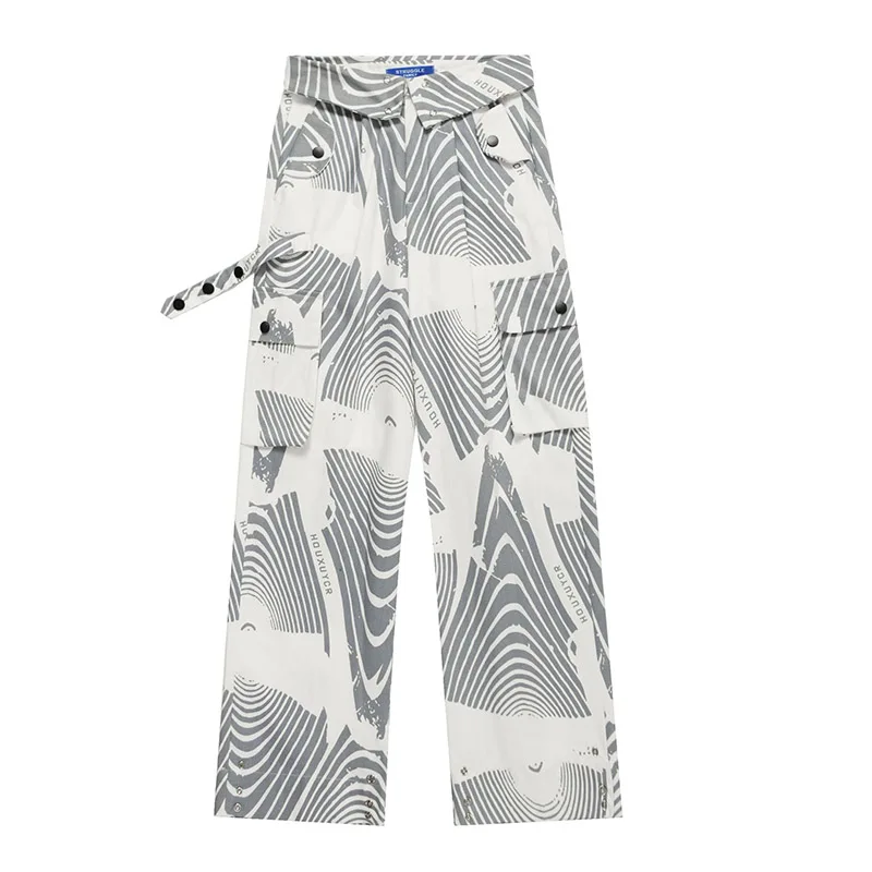 Брюки-карго в стиле хип-хоп с принтом, повседневные мужские прямые брюки с множеством карманов