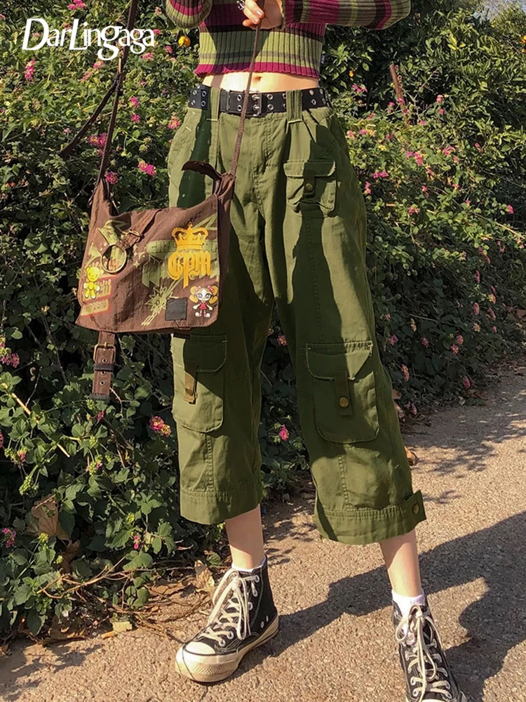 Брюки-карго женские прямые свободного покроя, до щиколотки, с карманами